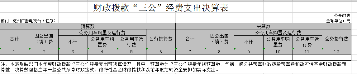 隨州廣播電視臺系統匯總2017年度財政撥款“三公”經費無支出,年初預算數為0,和預算無差異,上年度財政撥款“三公”經費支出合計2.73萬元,我臺在2017年度用事業收入支出公務車費用,較上年減少100%,控制費用支出,用事業收入彌補經費不足。