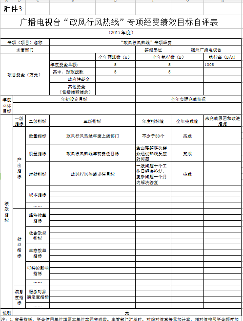 隨州廣播電視臺在2017年部門決算中反映所有項目績效自評結果。