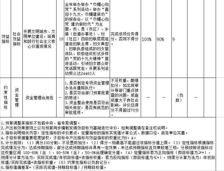 ??從評價情況來看,我會2017年度部門整體支出績效評價自評結果為“良好”。市婦聯的一般公共預算,財政資金效益較為明顯,通過系列活動的組織開展,調研督導、培訓學習等,我會在全市婦女投身社會經濟發展,家庭家教家風工作,婦女維權工作,基層婦聯組織建設以及婦女思想建設等方面都取得了顯著成效。