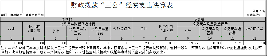 2017年度本單位“三公”經(jīng)費年初預(yù)算5.12萬元,其中:公務(wù)接待費1.61萬元、因公出國(境)費1.70萬元、公務(wù)用車運行費1.8萬元。本年度實際支出“三公”經(jīng)費20.87萬元,其中:公務(wù)接待費1.10萬元、公務(wù)用車運行費1.79萬元、公務(wù)用車購置費17.98萬元,沒有出國(境)費。同比2016年公務(wù)用車運行費基本持平;公務(wù)接待費增加0.49萬元,增長30.43%,主要原因是:2017年省、市維穩(wěn)任務(wù)繁重,上級工作組來隨督導(dǎo)、市召開維穩(wěn)會議增多,公務(wù)接待費用相應(yīng)增加,2017年單位公務(wù)接待共23批次120人;公務(wù)用車購置費增加17.98萬元,增長100%,主要原因是:原公務(wù)用車到達(dá)報廢年限,故障頻出且無法徹底修復(fù),影響正常工作,2017年12月新購置公務(wù)用車1臺,該車為單位現(xiàn)有的1臺公務(wù)用車。