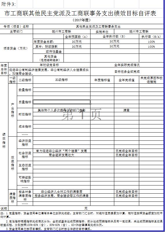 ?附件3:《隨州市工商聯政治特別費績效目標自評表》
