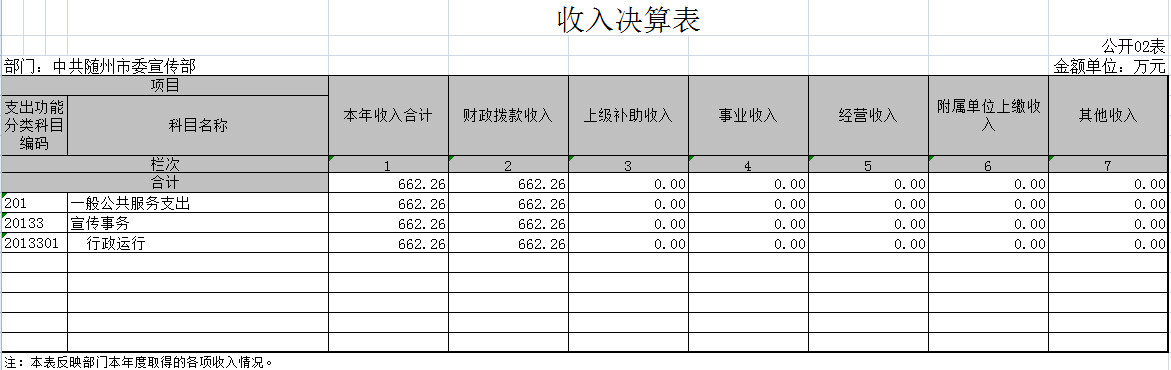 ???1、2017年市委宣傳部決算收入為662.26萬元(均為財(cái)政撥款收入),比預(yù)算收入451.81萬元增加210.45萬元,比上年財(cái)政財(cái)政撥款收入588萬元增加74.26萬元,增幅12.6%,增加原因主要是人員經(jīng)費(fèi)增加,項(xiàng)目經(jīng)費(fèi)增加。全年決算支出為745.01萬元(全部為財(cái)政撥款支出),比預(yù)算支出451.81萬元增加293.2萬元,比上年658.7萬元增加86.31萬元,增幅13.1%,增加原因主要是人員工資調(diào)整、宣傳貫徹落實(shí)習(xí)近平新時(shí)代中國特色社會主義思想和黨的十九大精神產(chǎn)生的項(xiàng)目經(jīng)費(fèi)增加。