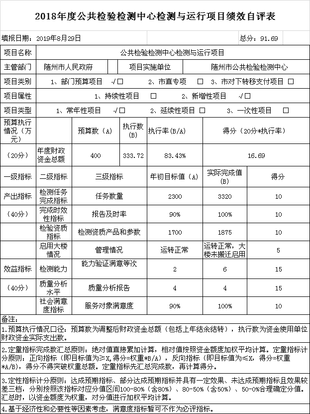 附件:《2018年度市公共檢驗檢測中心檢測與運行項目績效自評表》