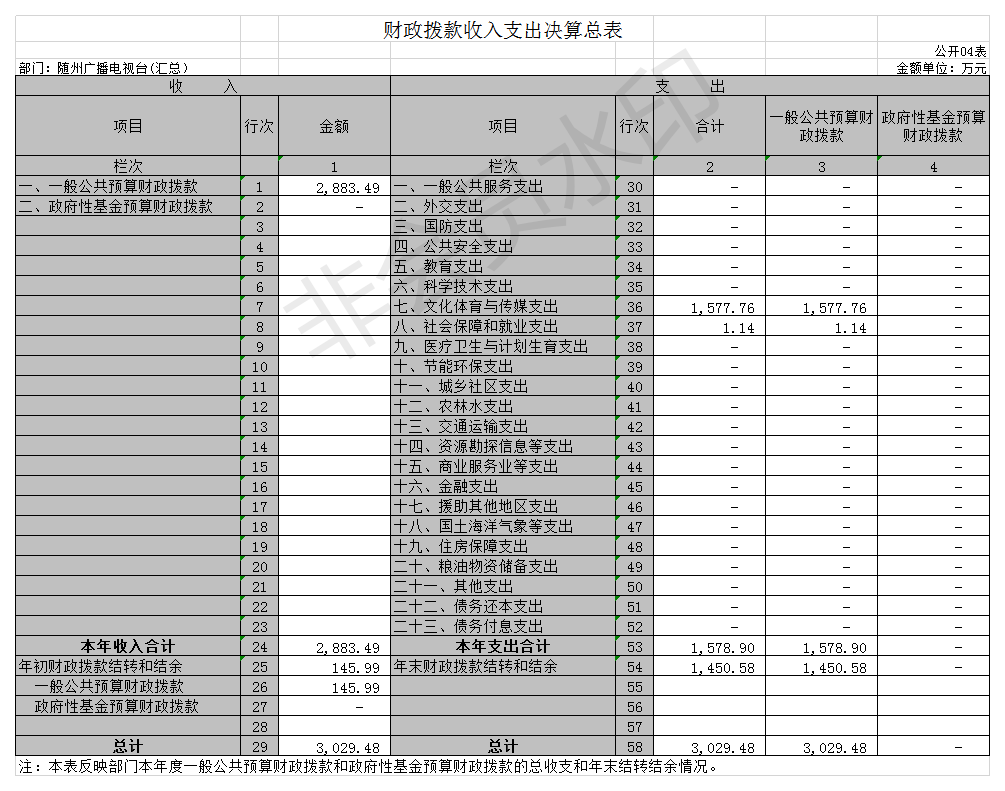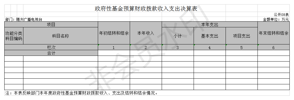 隨州廣播電視臺系統(tǒng)匯總及本級2018年無政府性基金預(yù)算收支,08表為空表,和上年同比無增減。