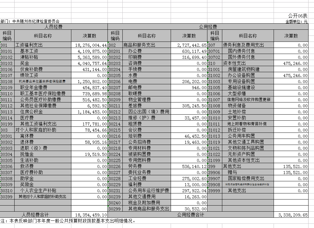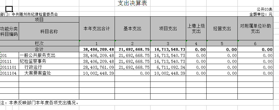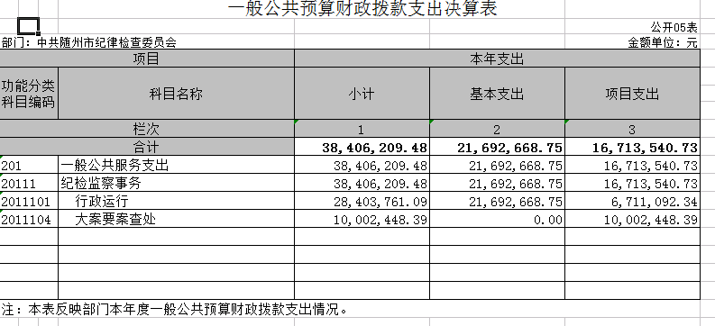 第三部分? 隨州市紀(jì)委監(jiān)委2018年決算表