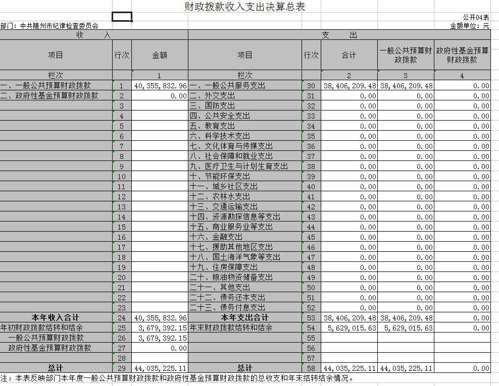 四、財(cái)政撥款收入支出決算總表