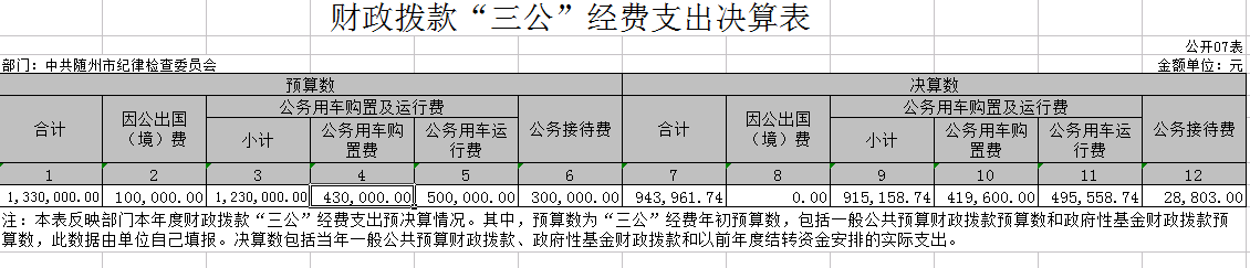 七、財(cái)政撥款“三公”經(jīng)費(fèi)支出決算表