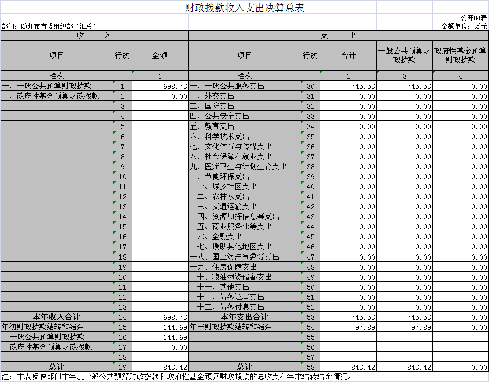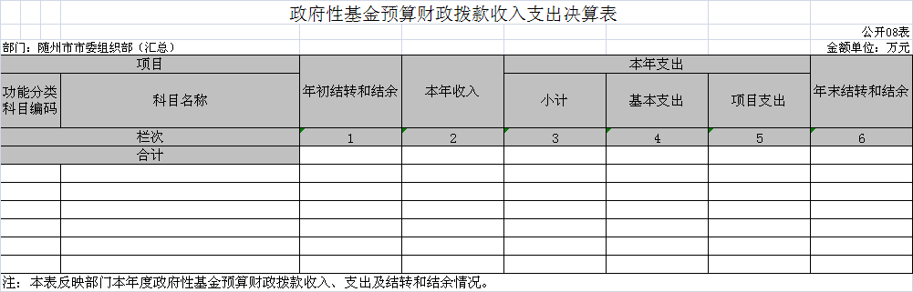 ??隨州市委組織部部門(匯總)及部門(本級(jí))均無(wú)政府性基金預(yù)算收支情況。