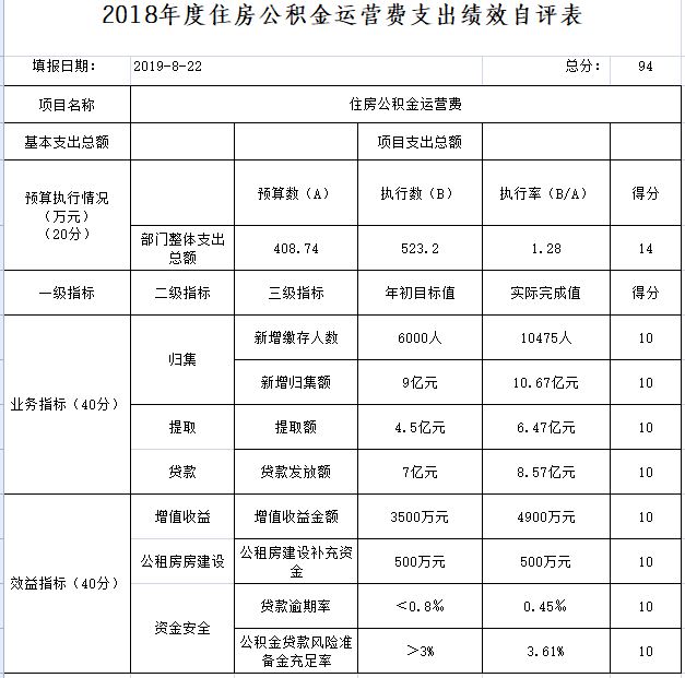 根據(jù)預(yù)算績(jī)效管理要求,我單位組織對(duì)2018年度一般公共預(yù)算項(xiàng)目支出全面開展績(jī)效自評(píng),共涉及項(xiàng)目1個(gè),資金523.20萬元,占一般公共預(yù)算項(xiàng)目支出408.74的128.00%,自評(píng)得分為94分。從評(píng)價(jià)情況來看,我單位項(xiàng)目執(zhí)行情況較好,能按照制定的計(jì)劃完成并通過驗(yàn)收,預(yù)期的績(jī)效目標(biāo)也基本實(shí)現(xiàn),無論是取得的經(jīng)濟(jì)效益還是社會(huì)效益都有顯著成果,同時(shí)我單位項(xiàng)目的運(yùn)行也是嚴(yán)格按照相關(guān)規(guī)章制度執(zhí)行,不存在違紀(jì)違規(guī)問題。