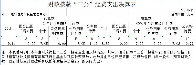 7、財(cái)政撥款“三公”經(jīng)費(fèi)支出決算表