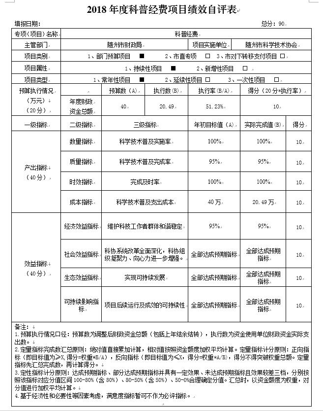附2、2018年度隨州市科學技術協會項目支出績效自評表