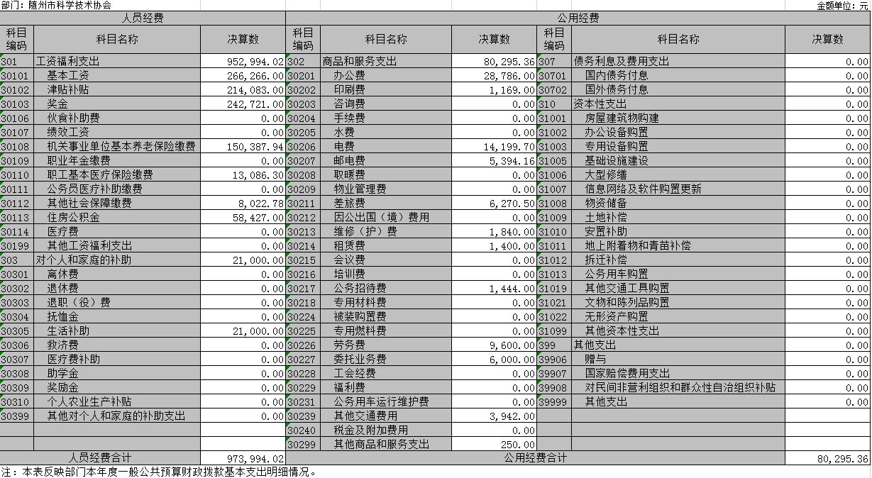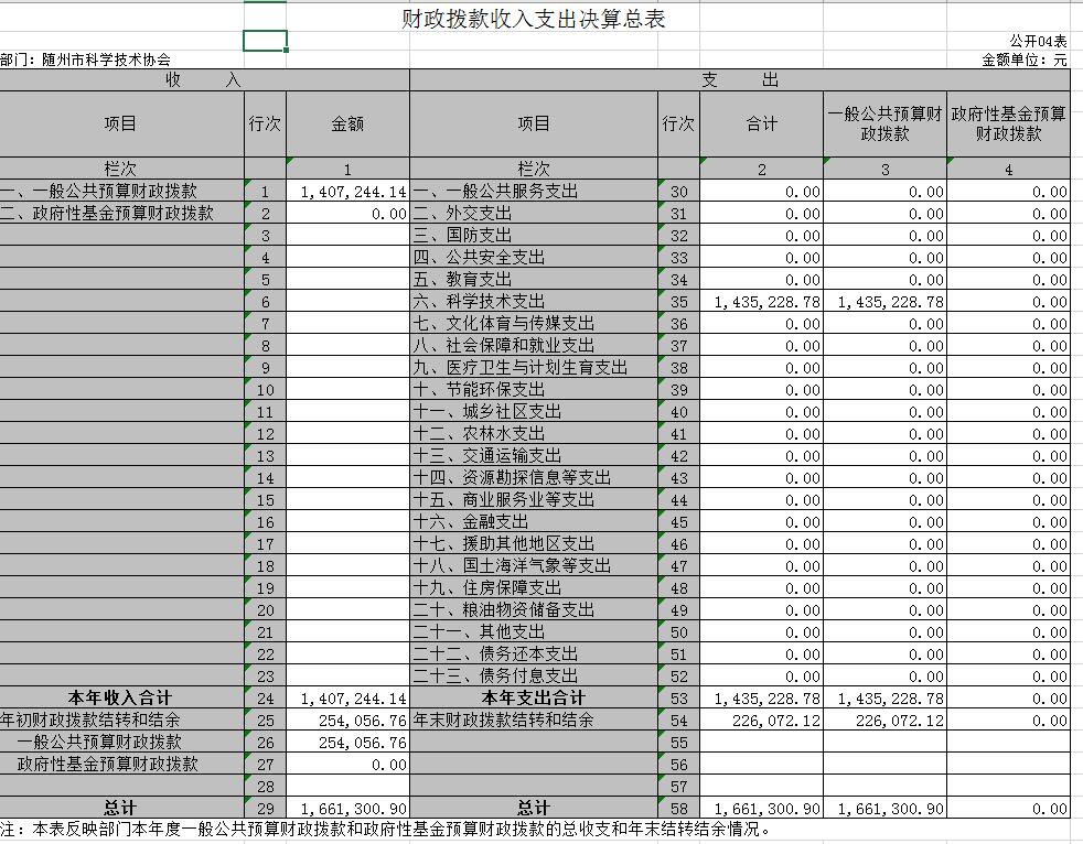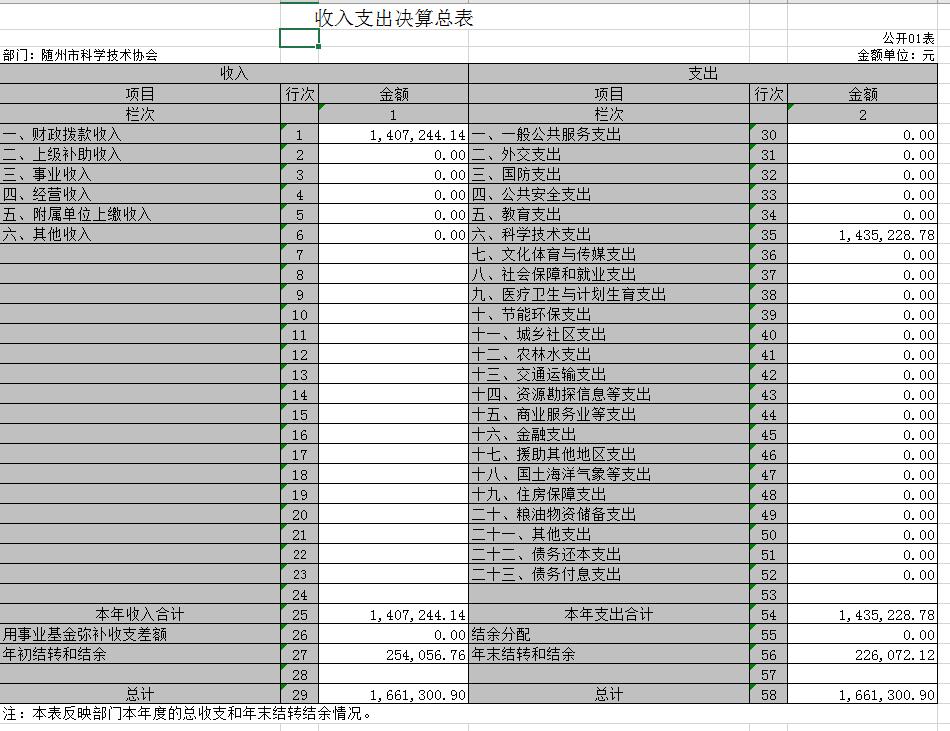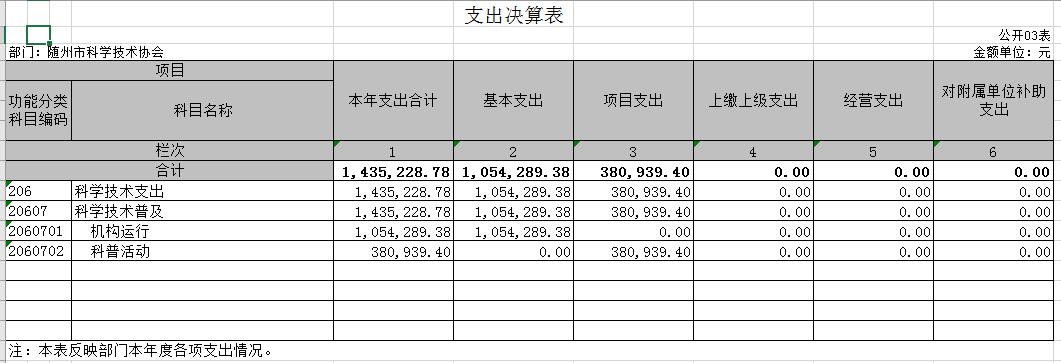 附3、2018年度隨州市科學技術協會部門決算表