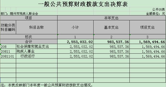 3、項目支出(2089901項):指在基本支出之外為完成特定行政任務和事業發展目標所發生的支出,包括殘疾人康復、宣傳文體、教育就業、維權信訪、組織聯絡等項目所產生的支出。