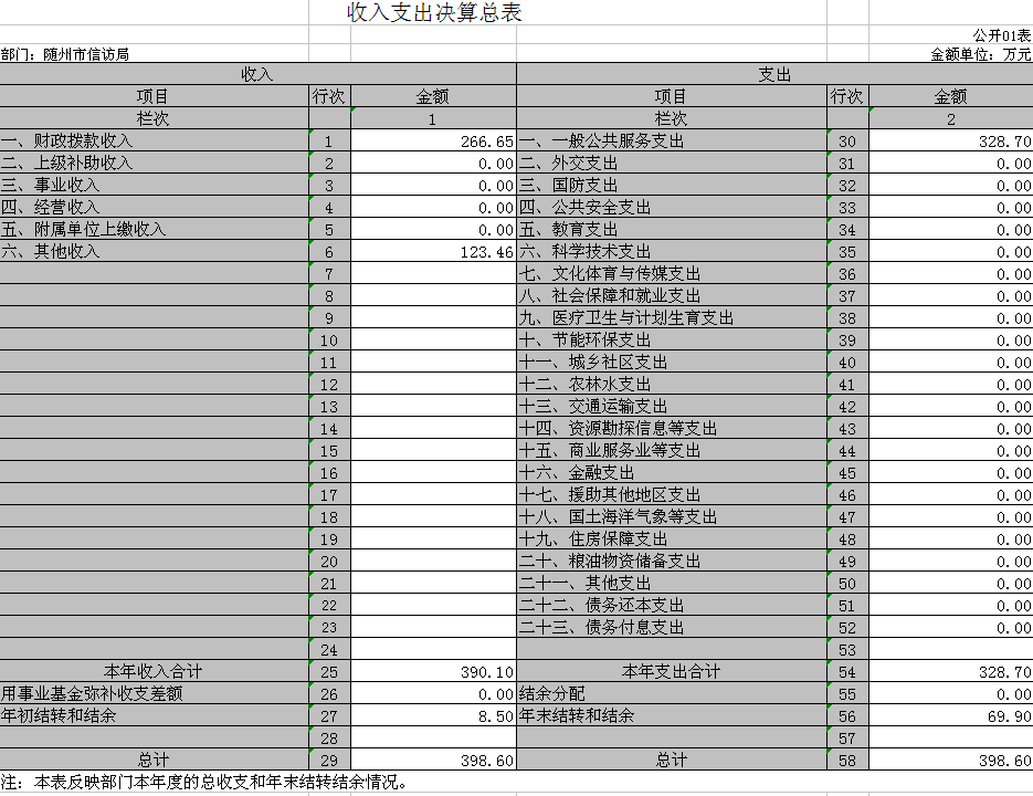 市信訪局屬正處級行政機關(guān)。決算單位構(gòu)成包含市群眾信訪接待服務(wù)中心:第一部分是局機關(guān)(機關(guān)現(xiàn)設(shè)有4個職能科室:辦公室、督辦科、辦信網(wǎng)訪科、接訪科)。第二部分是市群眾來訪接待服務(wù)中心,人員和局機關(guān)合署辦公,無獨立法人,財政撥款經(jīng)費和局機關(guān)合署使用一個國庫集中支付戶頭(接訪中心為正科級全額撥款事業(yè)單位,設(shè)有2名全額撥款事業(yè)編制和7名“以錢養(yǎng)事”編制。