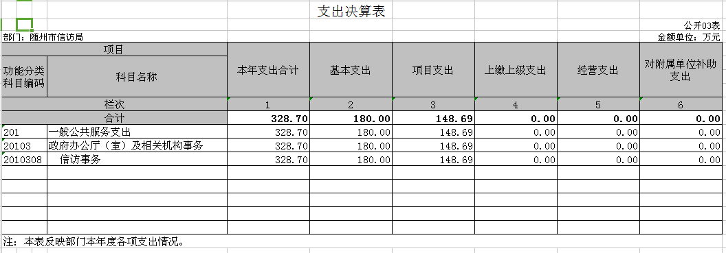 一般公共服務(wù)(類)信訪事務(wù)(款)信訪工作專項:指市信訪局用于信訪事項解難解困方面的專項支出,即信訪類項目專項經(jīng)費。