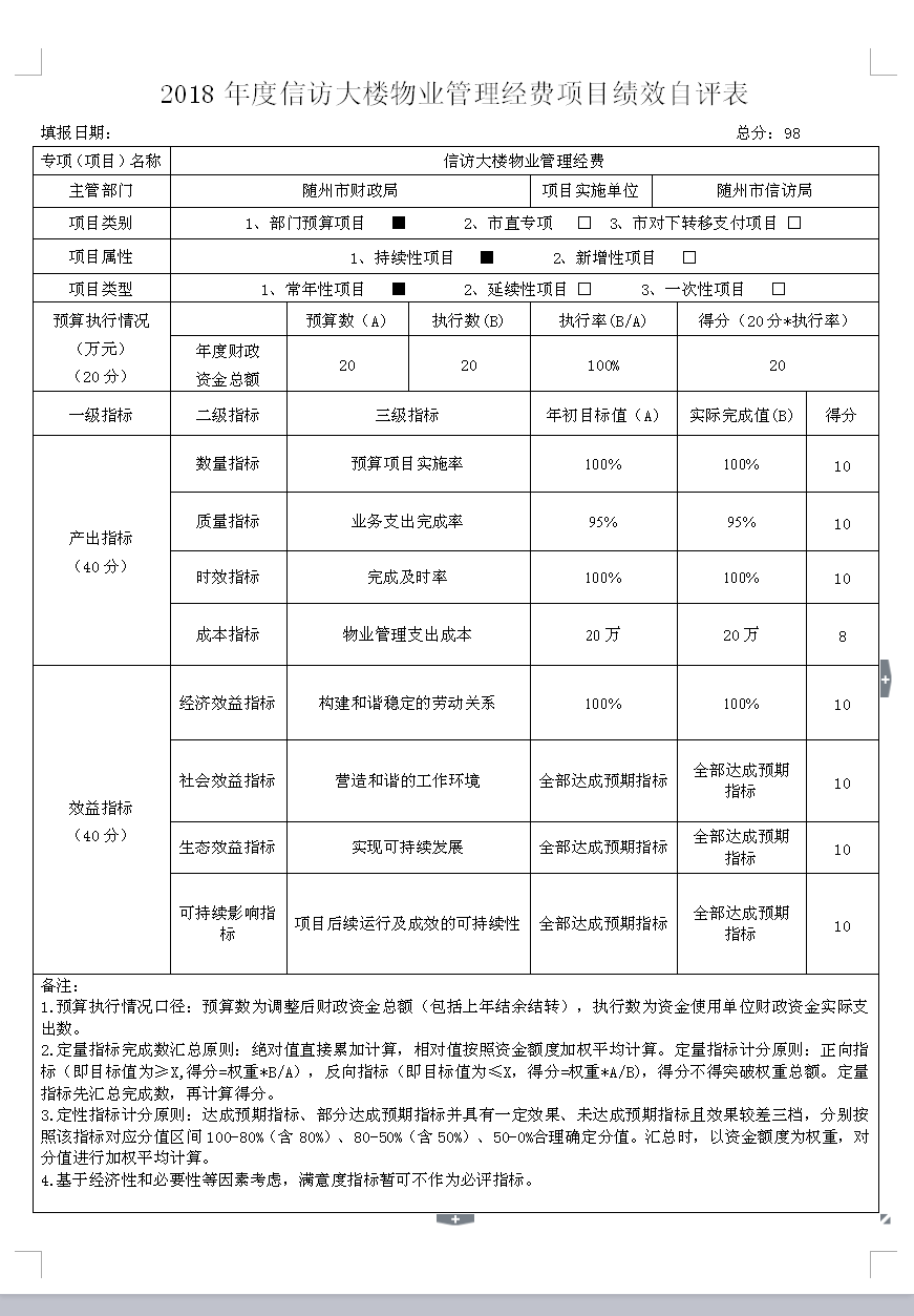 市財政局于2018年2月5日,以隨財預(yù)發(fā)〔2018〕1號文,下達接訪勸返及解困導(dǎo)訪運轉(zhuǎn)經(jīng)費項目指標52.00萬元、信訪大樓物業(yè)管理項目經(jīng)費20.00萬元。