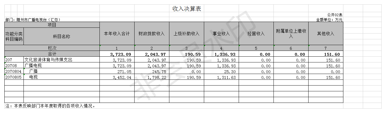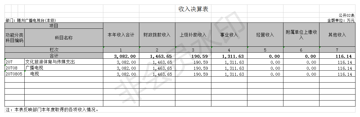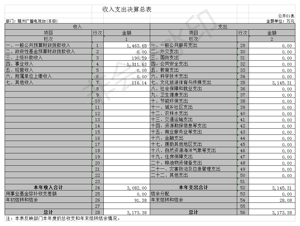 隨州廣播電視臺(本級)2019年收入合計3173.38萬元[較2018年(4242.57萬元)減少1069.19萬元,減少25.2%,主要原因是減少了傳媒中心廣電設備資金及事業收入,和2019年預算(3853.53萬元)相比減少了680.15萬元,減少17.65%]。其中財政撥款1463.65萬元,較2018年(2320萬元)減少了856.35萬元,減少原因是減少了傳媒中心廣電設備資金撥款及事業收入,與2019年預算(2132萬元)相比減少了668.35萬元,主要是減少了傳媒中心廣電設備資金撥款,上級補助收入190.59萬元,其他收入116.14萬元;上年結轉91.38萬元。