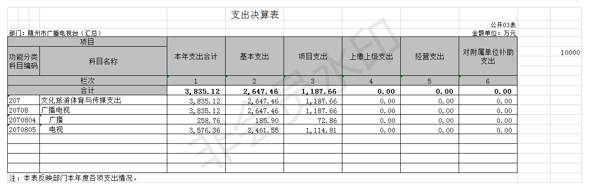 隨州廣播電視臺項目全年預算數為1383萬元,執行數為579萬元,完成預算的81.87%,主要原因是傳媒中心演播區域裝修進度滯后,設備無法進場導致未進行支付廣電設備預算資金,由財政部門調節804萬元統籌安排,導致年底執行數和預算數存在差異。
