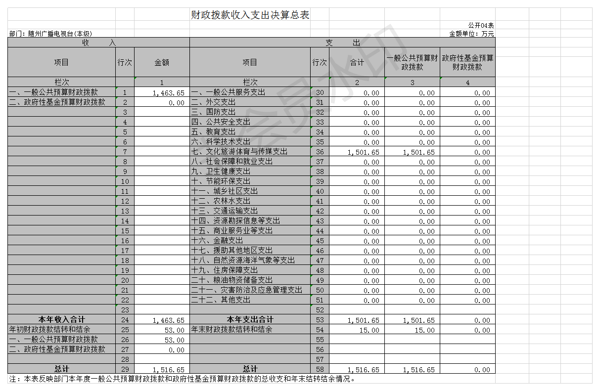 隨州廣播電視臺系統匯總及本級2019年無政府性基金預算收支,08表為空表,和上年同比無增減。