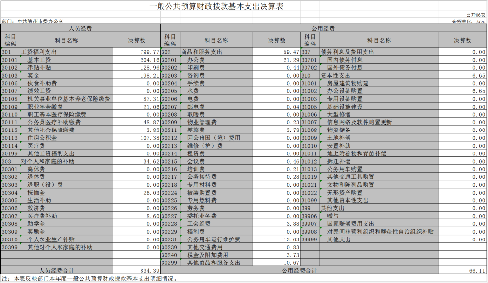 部門整體支出總額 | 1038.81萬元 | 995.67萬元 | 96% | 19 | |