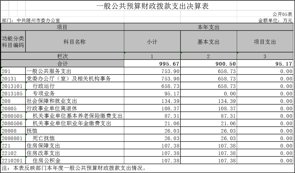 基本支出總額 | 900.5 | 項目支出總額 | 95.17 | ||