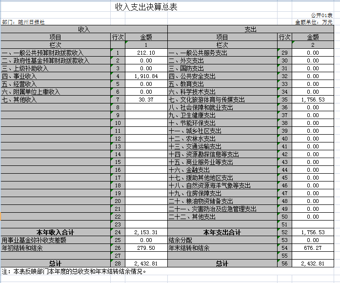 ????隨州日?qǐng)?bào)社為公益二類事業(yè)單位,核定編制67人。2019年底實(shí)有在編人數(shù)59人,退休人員20人。