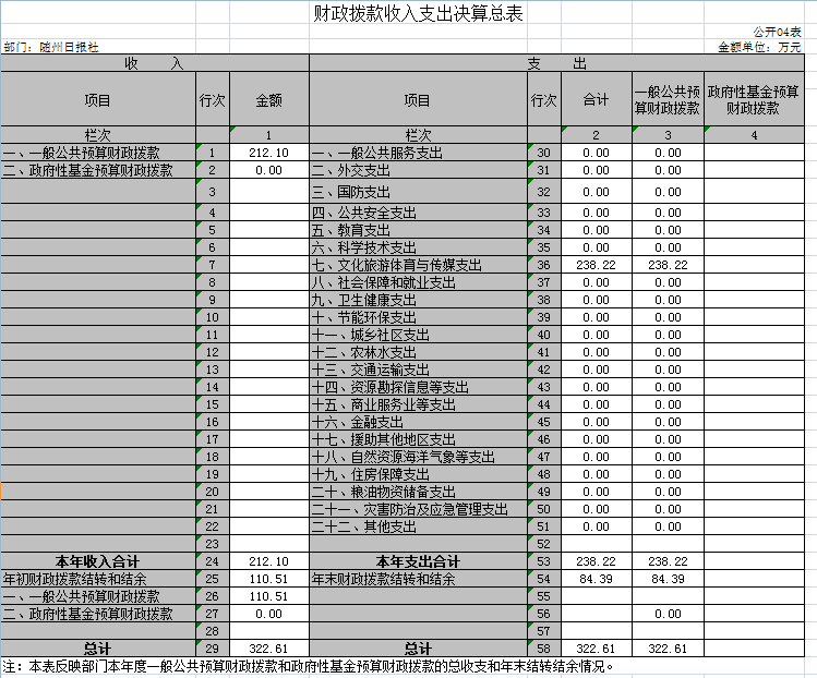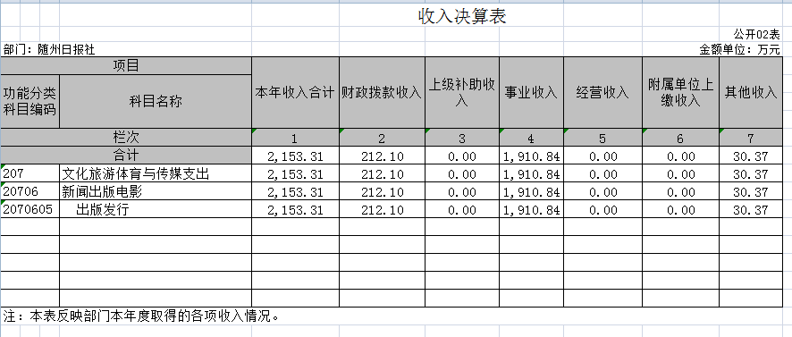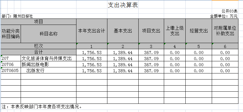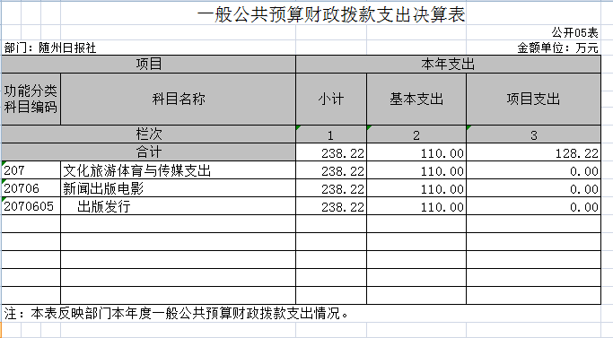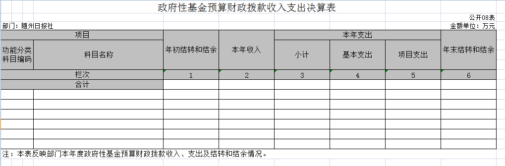 隨州日?qǐng)?bào)社因無(wú)政府性基金,所以“政府性基金預(yù)算財(cái)政撥款支出決算表”無(wú)數(shù)據(jù)。