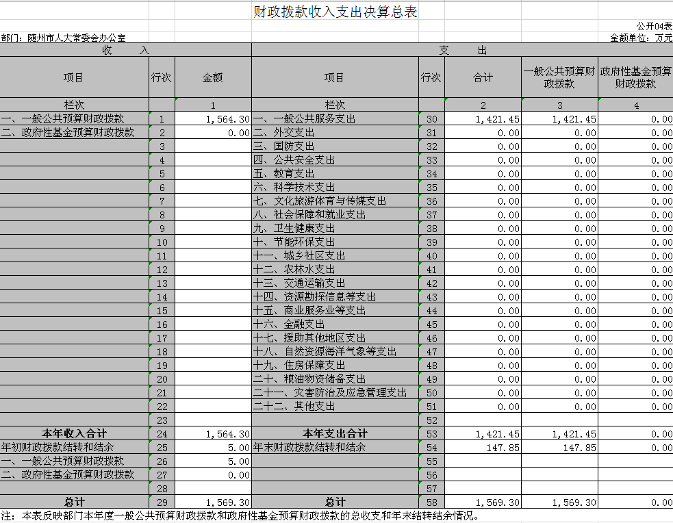 (四)財政撥款收入支出決算總表