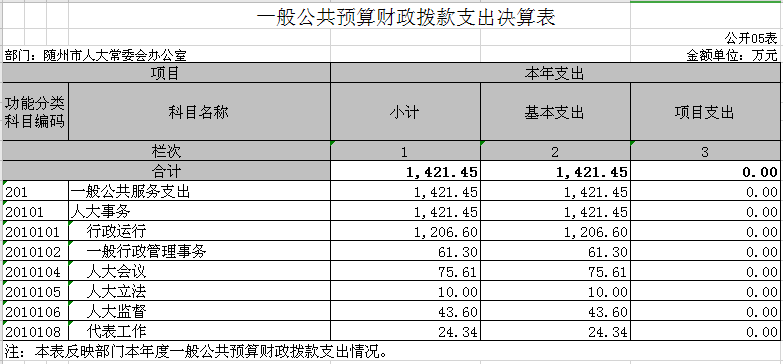 (五)一般公共預算財政撥款支出決算表