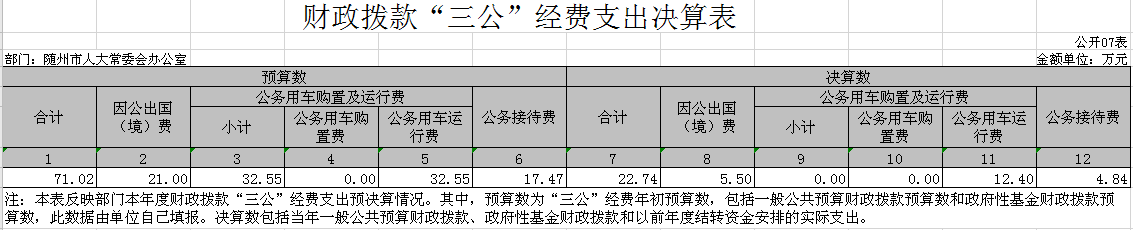 (七)財政撥款“三公”經費支出決算表