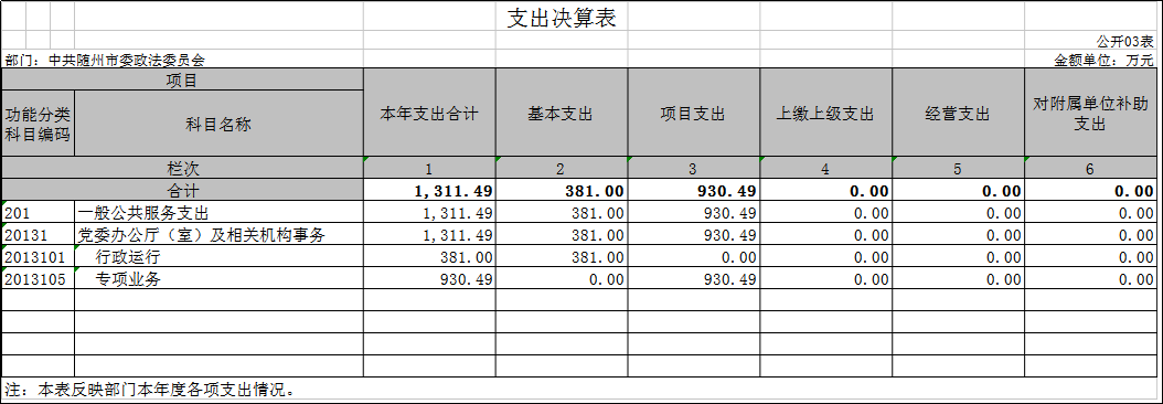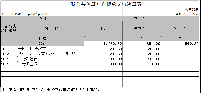 隨州市委政法委2019年部門決算