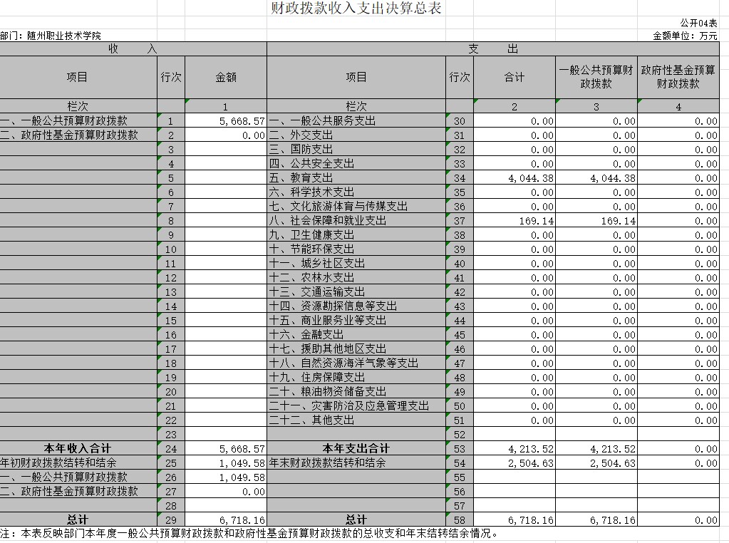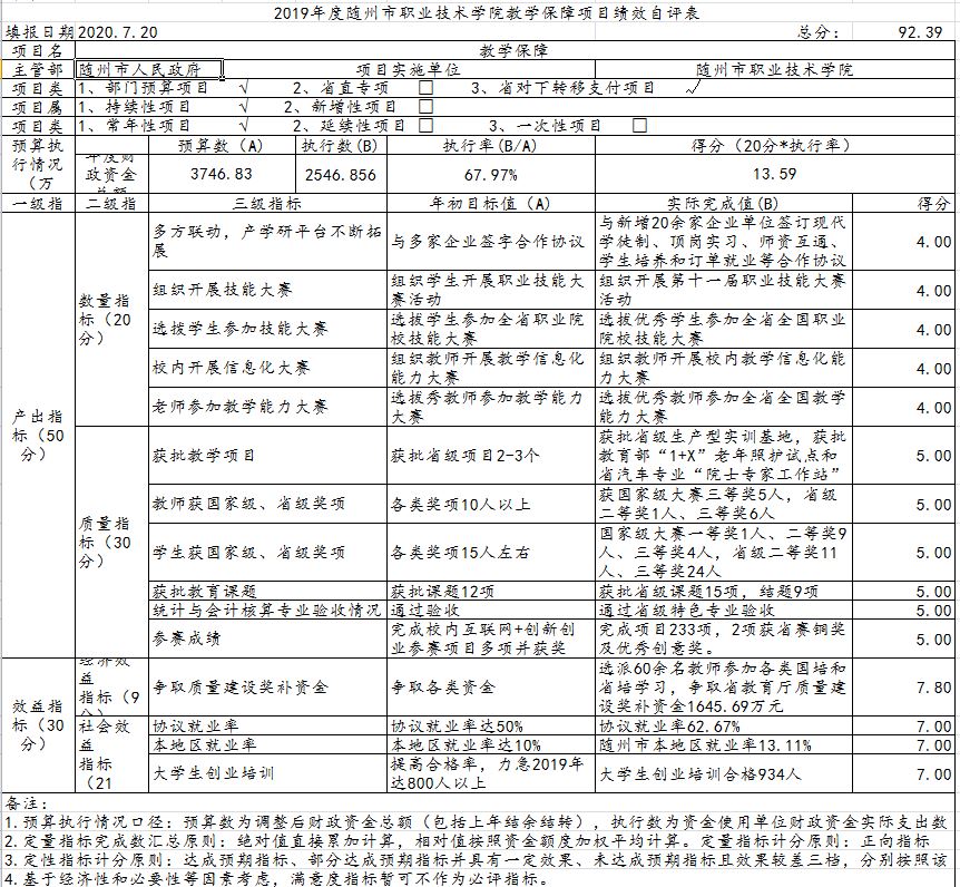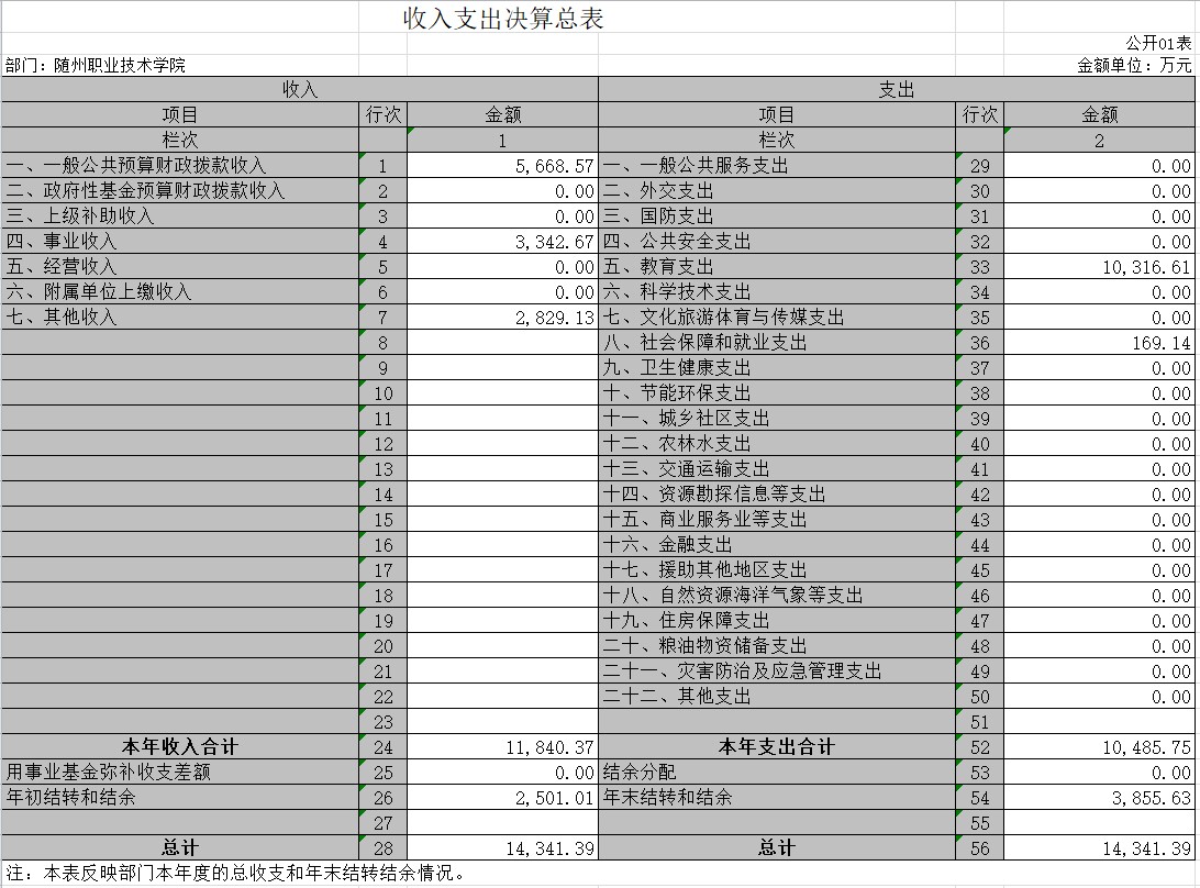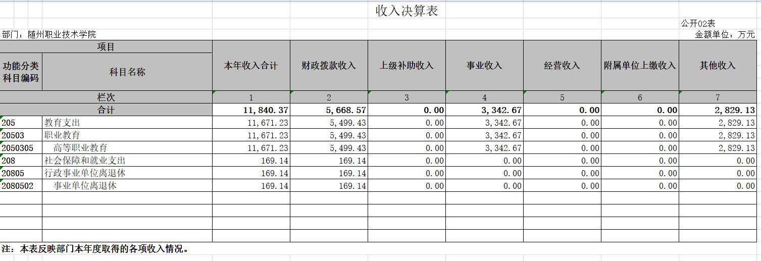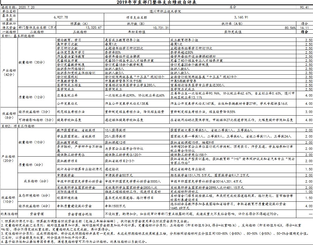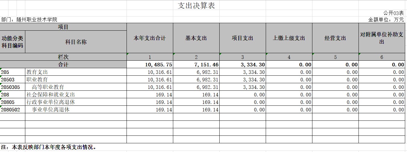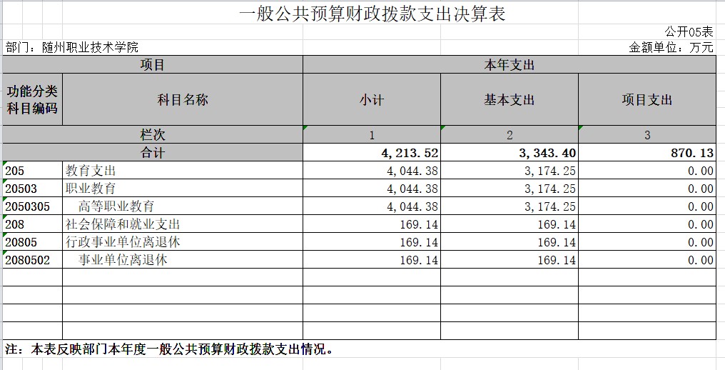 三、隨州職業技術學院2019年部門決算公開表