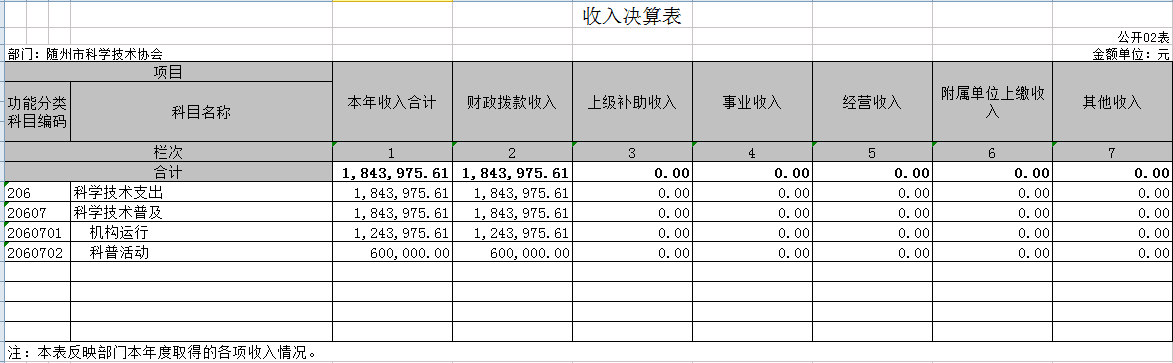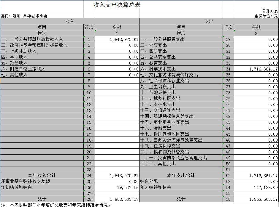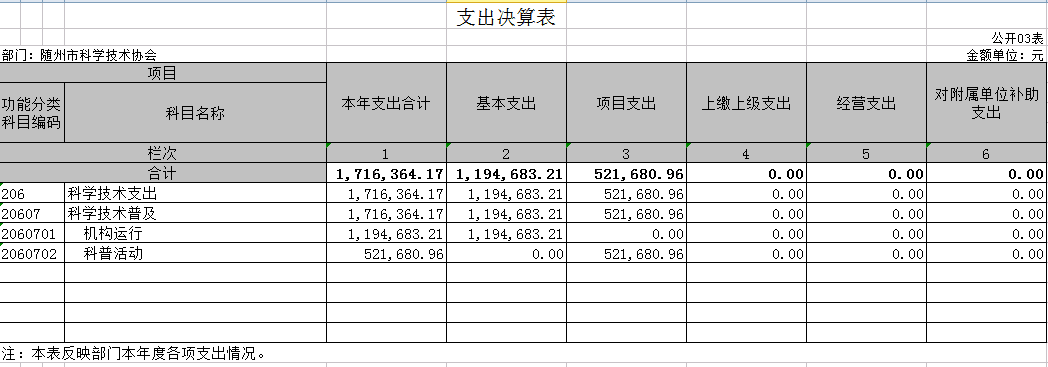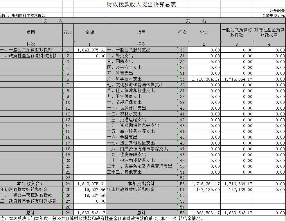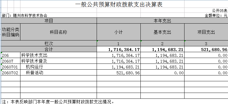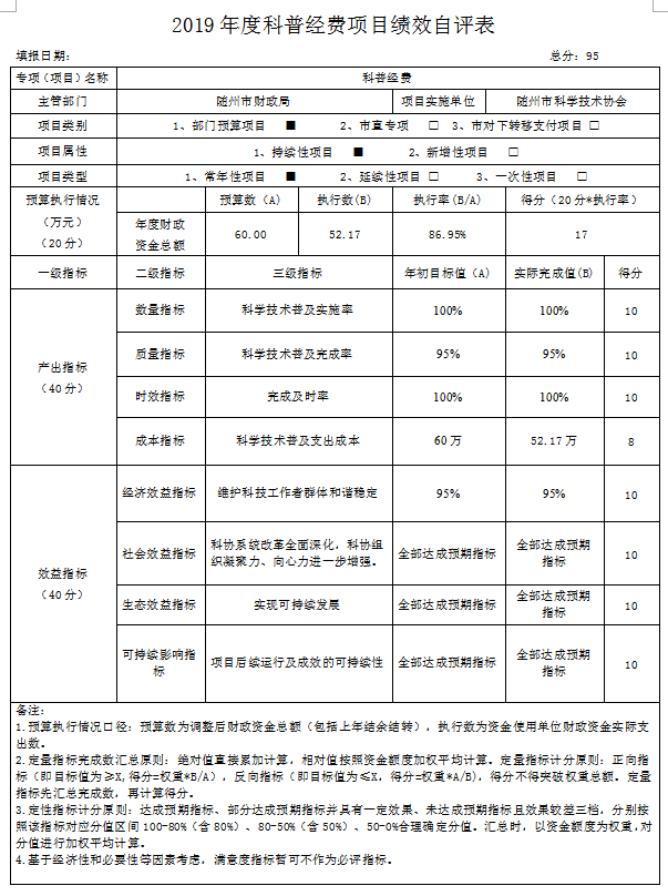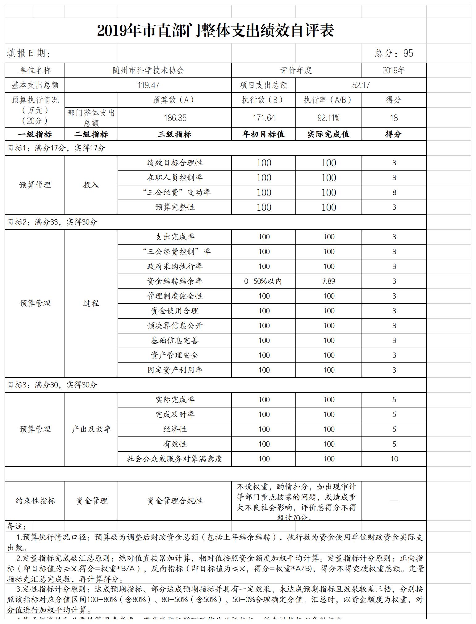 附1、2019年度隨州市科學技術協會整體支出績效自評表