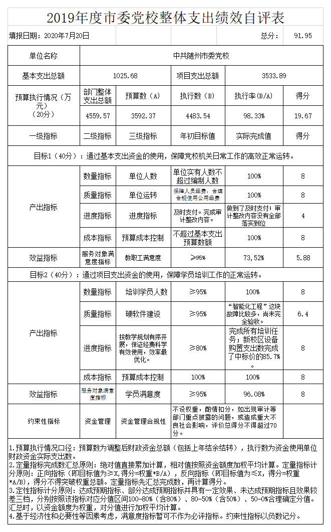 (八)關于2019年度預算績效情況的說明,以及市委黨校部門整體支出績效自評表一張以及項目績效目標自評表三張,隨州市委黨校績效評價報告.doc附件