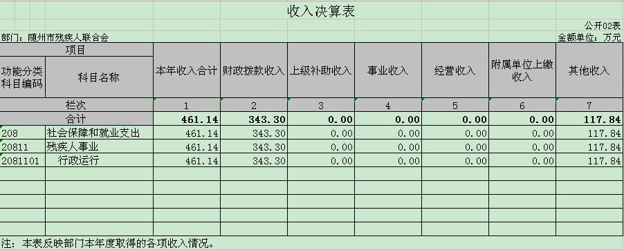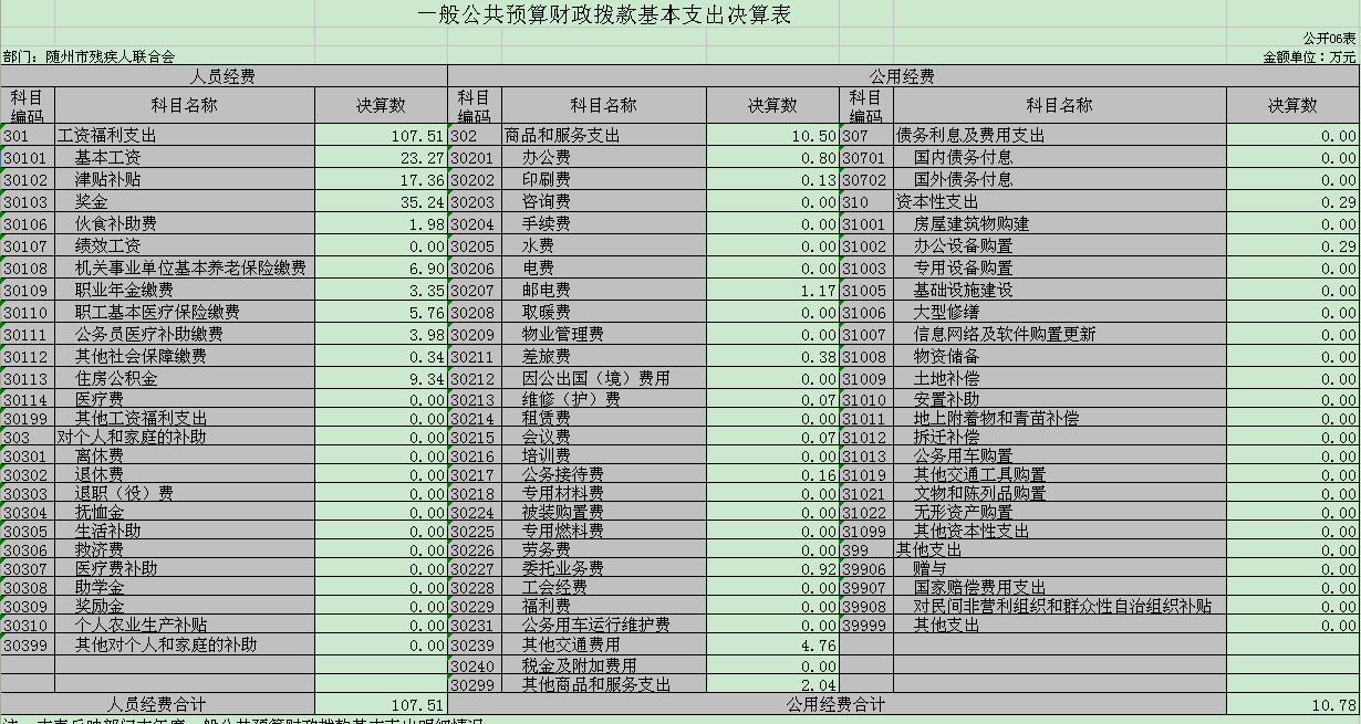 第三部分???隨州市殘疾人聯(lián)合會2019年部門決算表