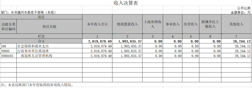 市委老干部局2019年度資金收入為財(cái)政撥款收入及其他收入,其中其他收入為組織部劃轉(zhuǎn)老干部黨費(fèi)收入。資金到位率100%。