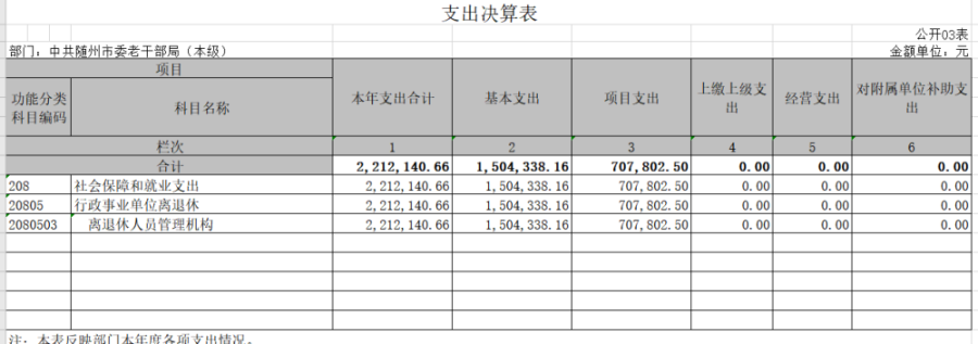 ??市委老干部局(含隨州市企事業(yè)單位離休干部管理服務(wù)中心)無重點(diǎn)項(xiàng)目預(yù)算績效目標(biāo)情況。
