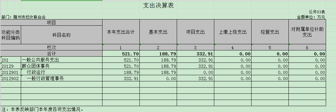 ??1、一般行政管理事務(群眾團體)全部為市婦聯本級的項目支出,主要是實施婦女兒童公益服務項目、“三八”系列活動、開展“最美家庭”活動、家庭助廉專題教育活動、設立12338女性服務平臺、提供維權咨詢及法律援助、進行法制宣傳教育、加強網絡機要保密建設、服務市委中心工作、開展婦女就業創業工作、干部教育培訓活動、家庭教育活動、關愛留守兒童活動、實施隨州市婦女兒童發展規劃中期評估督導工作以及婦女調查研究等工作。