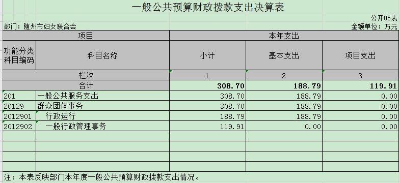 第二部分 隨州市婦聯2019年度部門決算情況說明