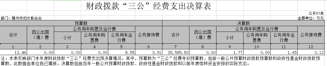 七、一般公共預算財政撥款“三公”經費支出決算表