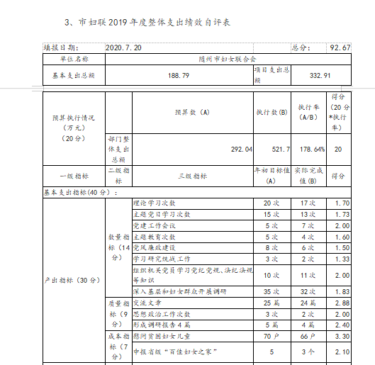2019年隨州市婦女聯合會預算收入292.04萬元比上年預算收入271.59增加20.45萬元,增幅7.53%;2019年決算支出為292.04萬元,較上年決算支出288.25萬元增加3.79萬元,增幅1.31%;2019年決算收支均較2018年預算收支增加原因是2019年度人員增資調資、當年開展婦代會以及2019年慶祝新中國成立70周年活動增加相關支出。,主要原因:一是2019年減少了貧困婦女“兩癌”免費檢查和部分婦女兒童公益項目。二是我會按照相關文件精神,在保證行政運行正常運行的情況下,壓縮各項開支。