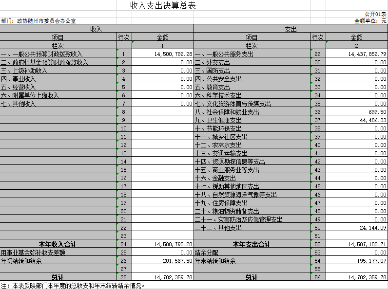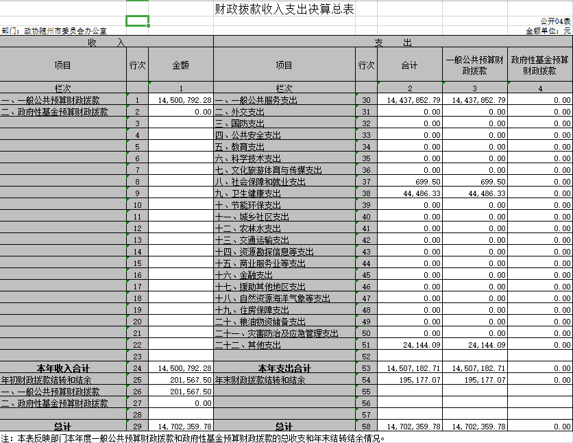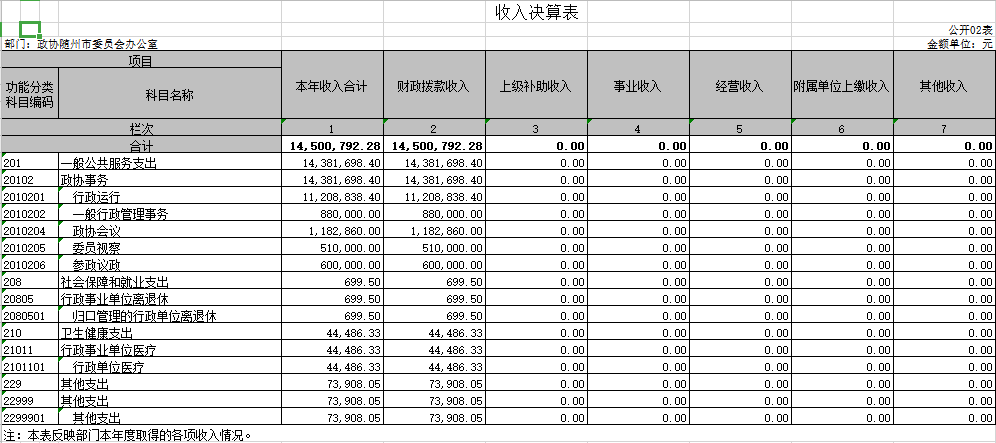 實際收入1470.23萬元,較預算增加55.23%,原因:人員工資正常增資機關大樓相應水電費、物業管理費及維修費增加“智慧政協”平臺建設項目支出;實際支出1450.72萬元,較預算增加53.17%,原因:人員工資正常增資,獎勵性工資;機關大樓相應水電費、物業管理費及維修費增加;“智慧政協”平臺建設項目支出;四屆三次全會會議支出。