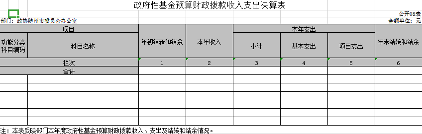 6、年初結轉和結余:指以前年度尚未完成、結轉到本年 按有關規定繼續使用的資金。