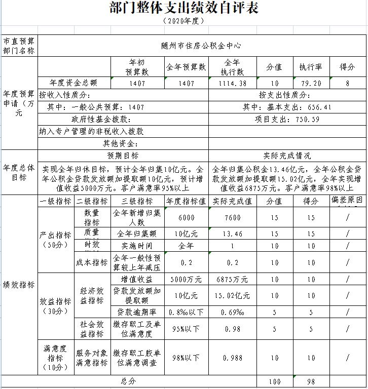 附件:2020年度部門(mén)整體支出績(jī)效自評(píng)表
