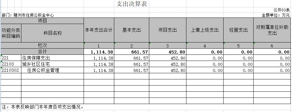 2020年支出1114.38萬(wàn)元,全部為住房保障支出,比上年1115.29萬(wàn)元減少0.91萬(wàn)元,減少0.08%。減少的主要原因是綜合服務(wù)平臺(tái)及信息管理系統(tǒng)升級(jí)開(kāi)發(fā)費(fèi)用較上年有所減少。