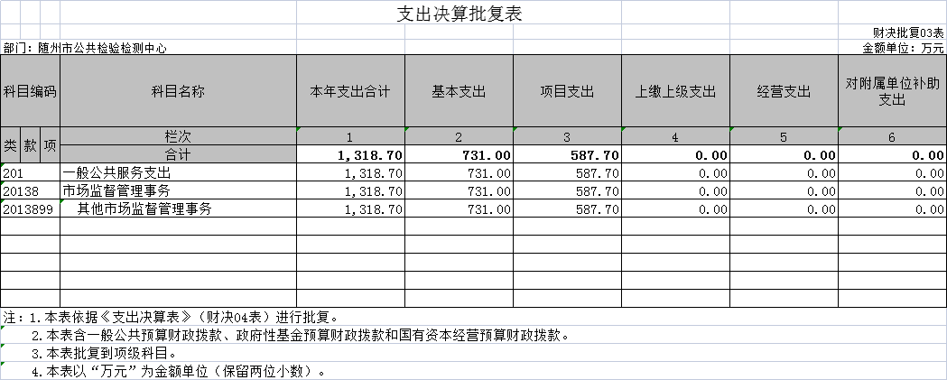 (三)一般公共服務(201類)市場監督管理事務(20138款)其他市場監督管理(2013899項):指市公共檢驗檢測中心用于用于保障機構正常運行、開展日常工作的基本支出。