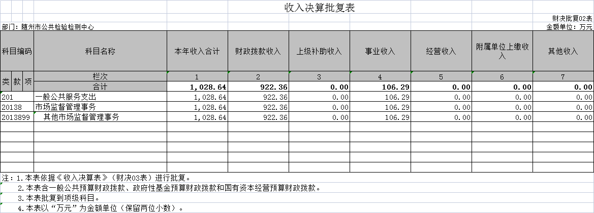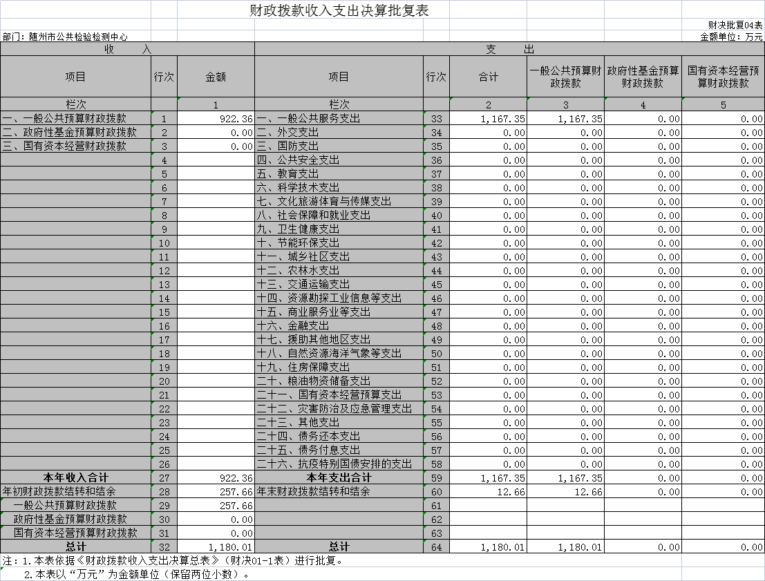 第三部分????隨州市公共檢測中心2020年部門決算表
