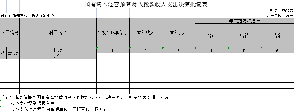 九、國有資本經營預算財政撥款收入支出決算表(公開表09)