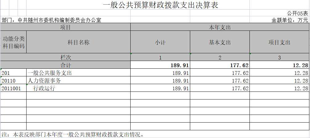 附3、2020年度隨州市機構編制委員會辦公室部門決算公開表