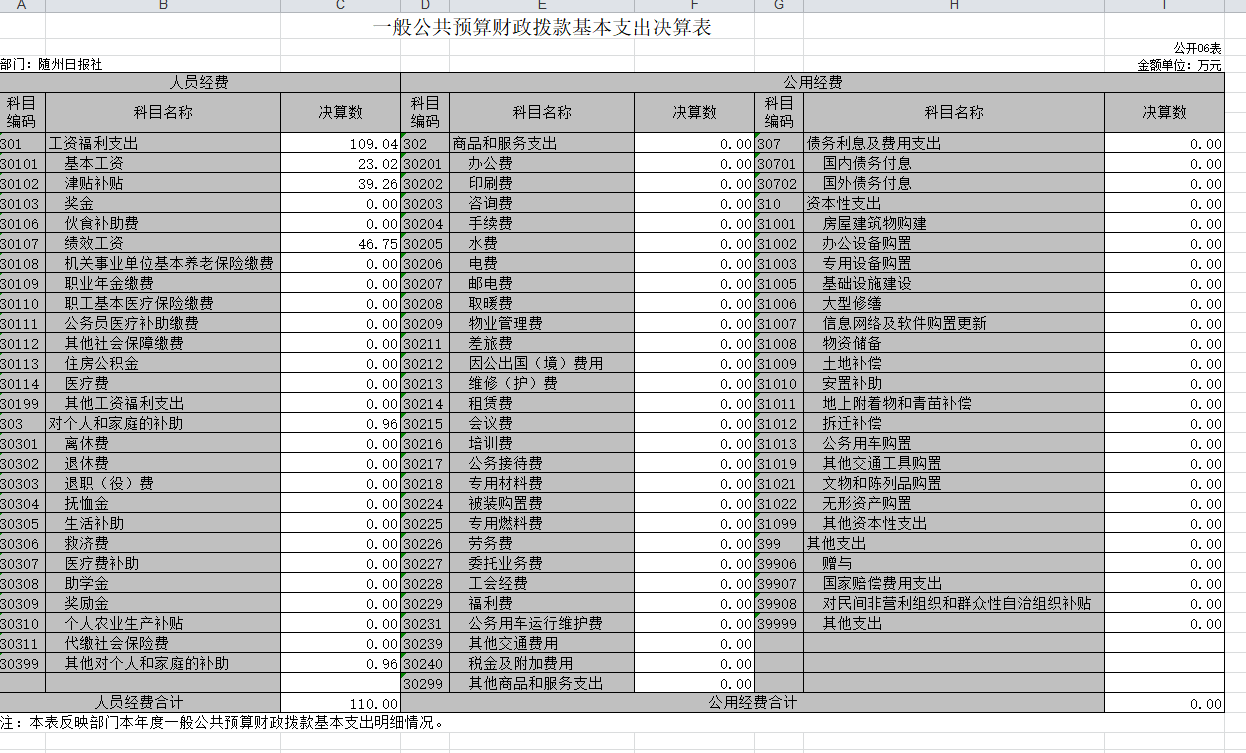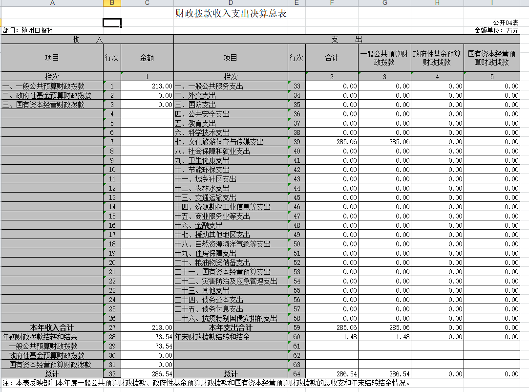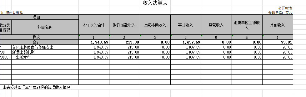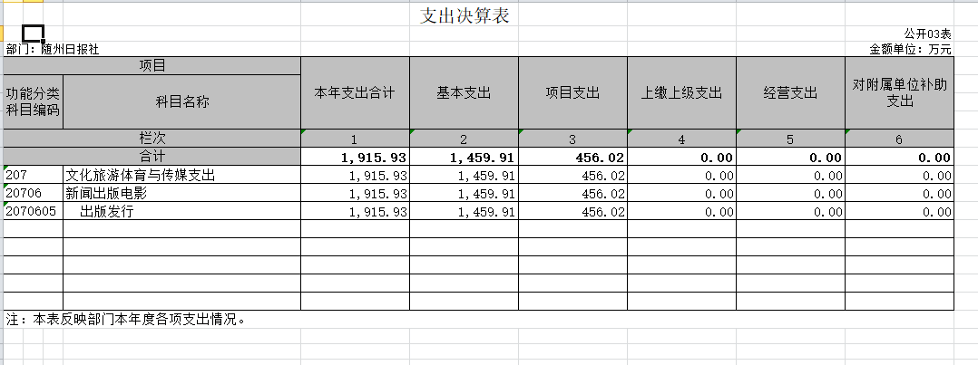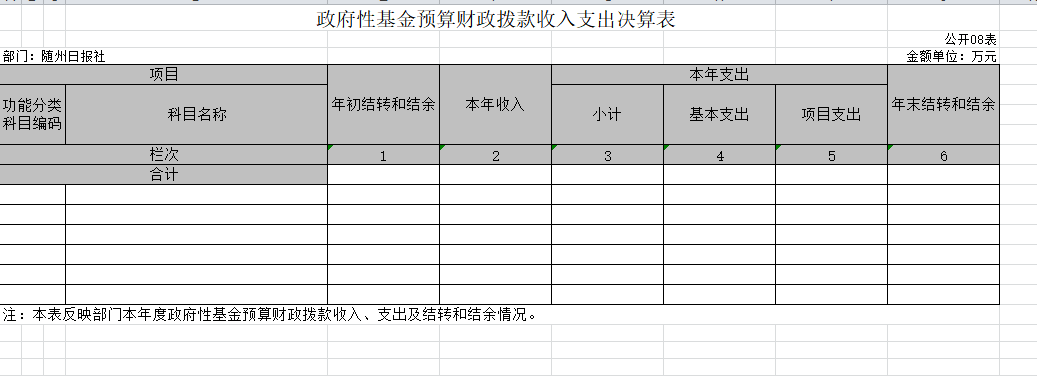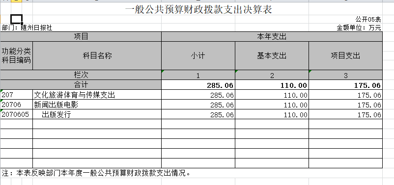 隨州日報社因無政府性基金,所以“政府性基金預(yù)算財政撥款支出決算表”無數(shù)據(jù)。